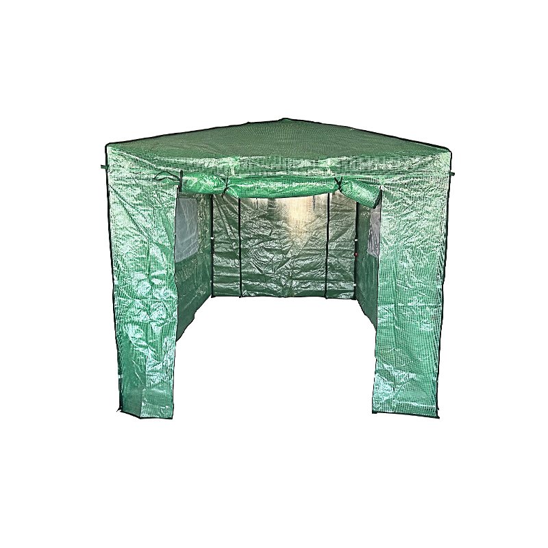 Просторен стакленик со димензии 3x3 метри и висина 2,5 метри, идеален за заштита и развој на вашите растенија. Конструкција од метална рамка со издржлива зелена ПЕ фолија обезбедува стабилност и заштита од ветер и дожд. Лесен за монтажа и одржување, со прозорчиња за вентилација и практичен пристап до растенијата. Совршен за зеленчук, цвеќе и билки во вашиот двор или градина.