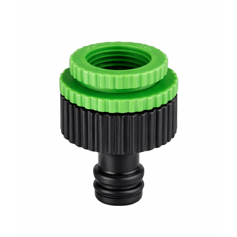 Универзален конектор за славина, наменет за лесно поврзување на градинарско црево со различни типови приклучоци. Погоден за навои од 1”, 1/2” и 3/4”, овозможува сигурно и стабилно приклучување без протекување.